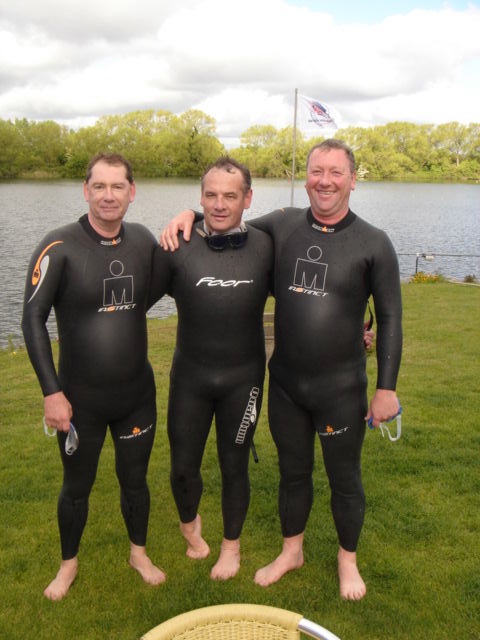 The very first 3 man training session at Heron aka (Hero) Lakes near Heathrow - all smiles but actually completely petrified.