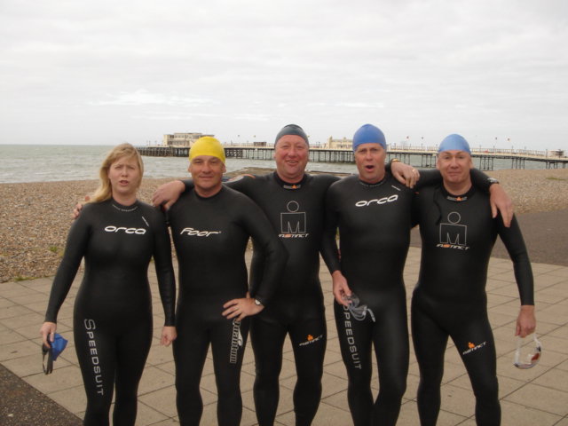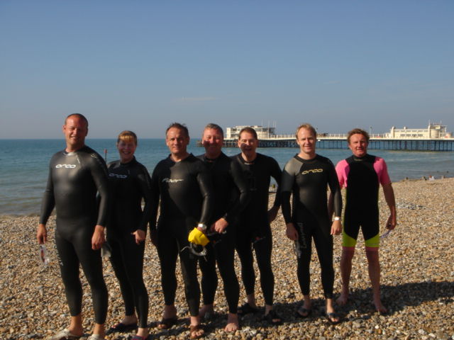 Team practice swim on Sunday 19th June at Worthing (It was all going swimmingly until we tried to beat the prevailing 2mph current)
