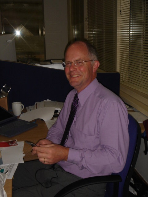 A picture of Ian holding a phone and looking particularly pleased with himself. Rumour has it (and he does work at a technology firm ) that he managed to turn it on.