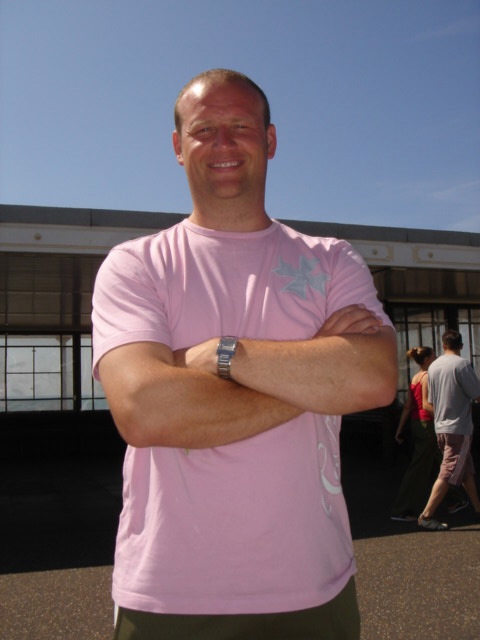 Simon in a " I'm relaxed and it's all under control mode". Obviously well before the wetsuit and swimming lark started.